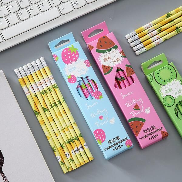 可愛いイチゴ柄の鉛筆セット(HB12本入り)