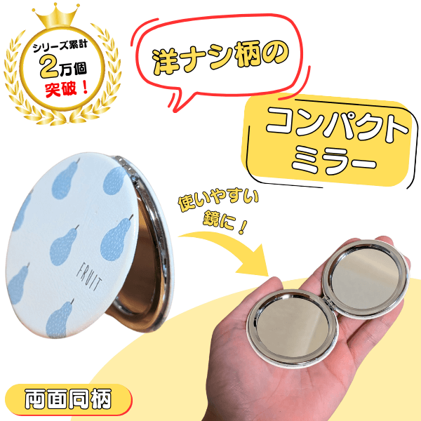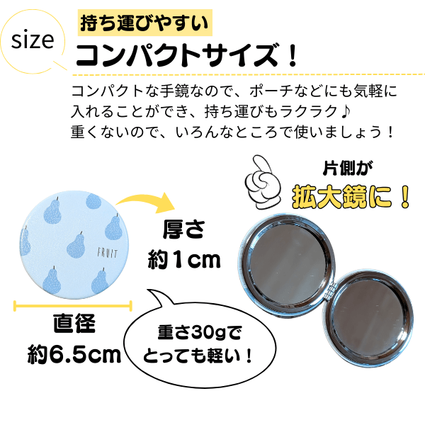 洋ナシ柄のサークルコンパクトミラー(手鏡)